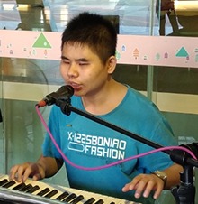 一出生雙眼就看不見,三年級轉到台中啟明學校就讀,同學都愛唱歌,於是也一起跟著加入了合唱團,從那時候開始,我便愛上了音樂。